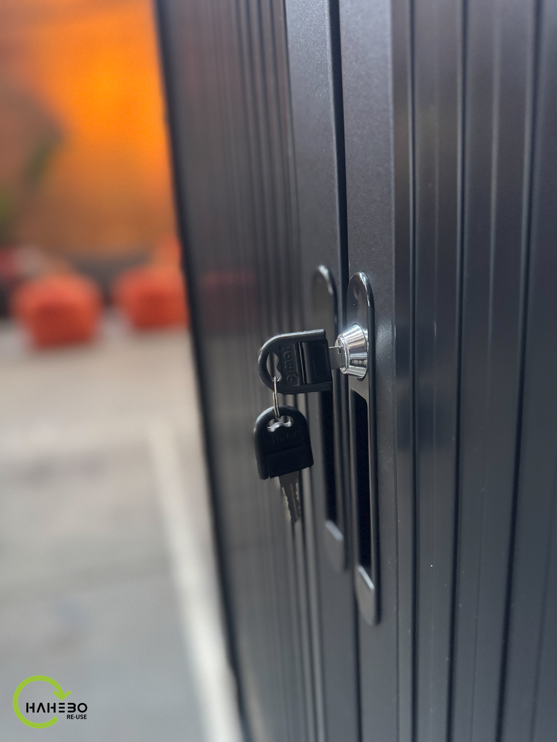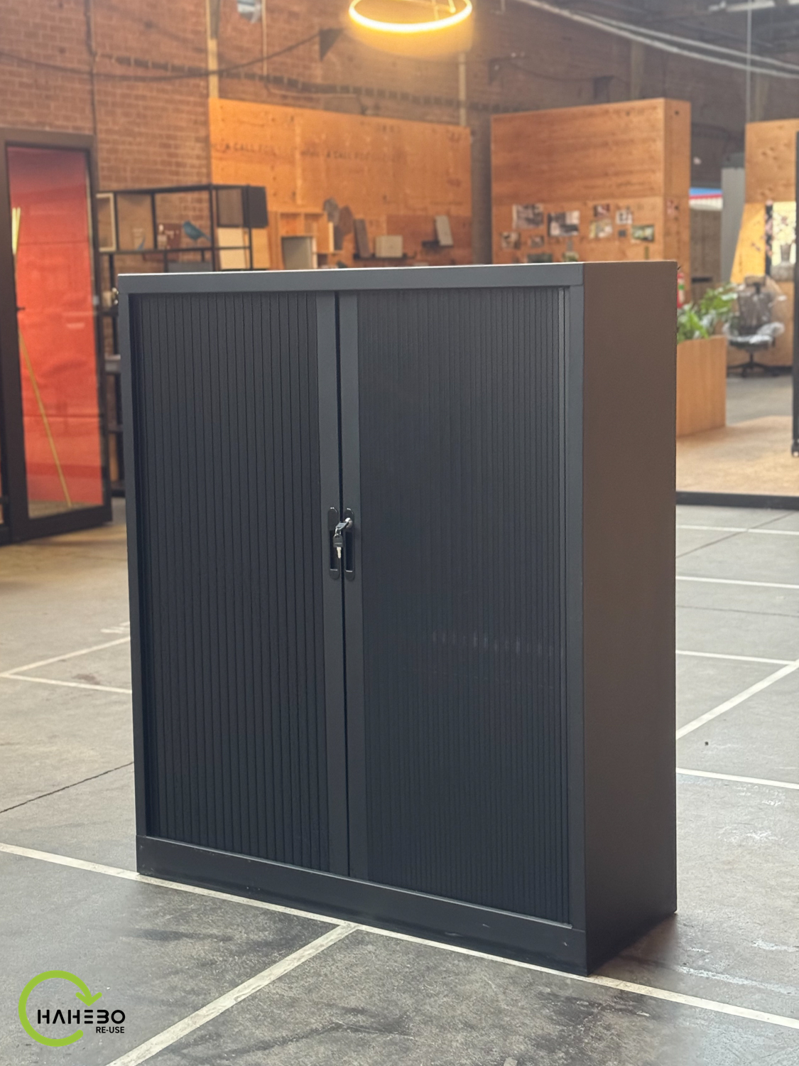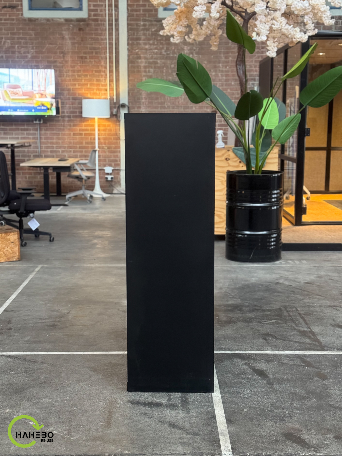 Deze complete schuifdeurkast is een stijlvolle en praktische oplossing voor het overzichtelijk opbergen van uw spullen. De kast is in goede staat en wordt geleverd inclusief sleutels, zodat u uw documenten of persoonlijke bezittingen veilig kunt opbergen. Met twee legborden biedt de kast voldoende ruimte voor mappen of andere kantoorbenodigdheden.