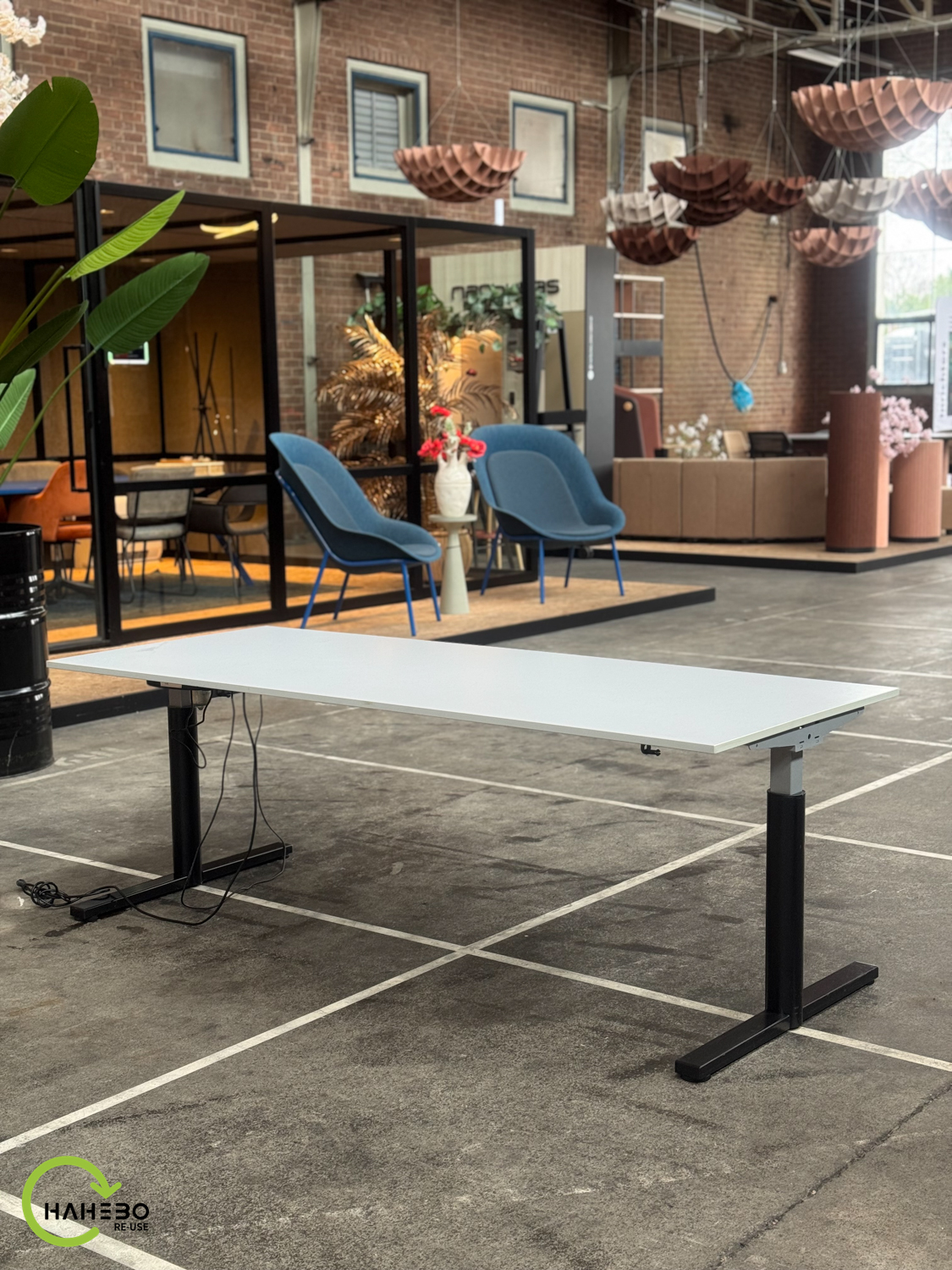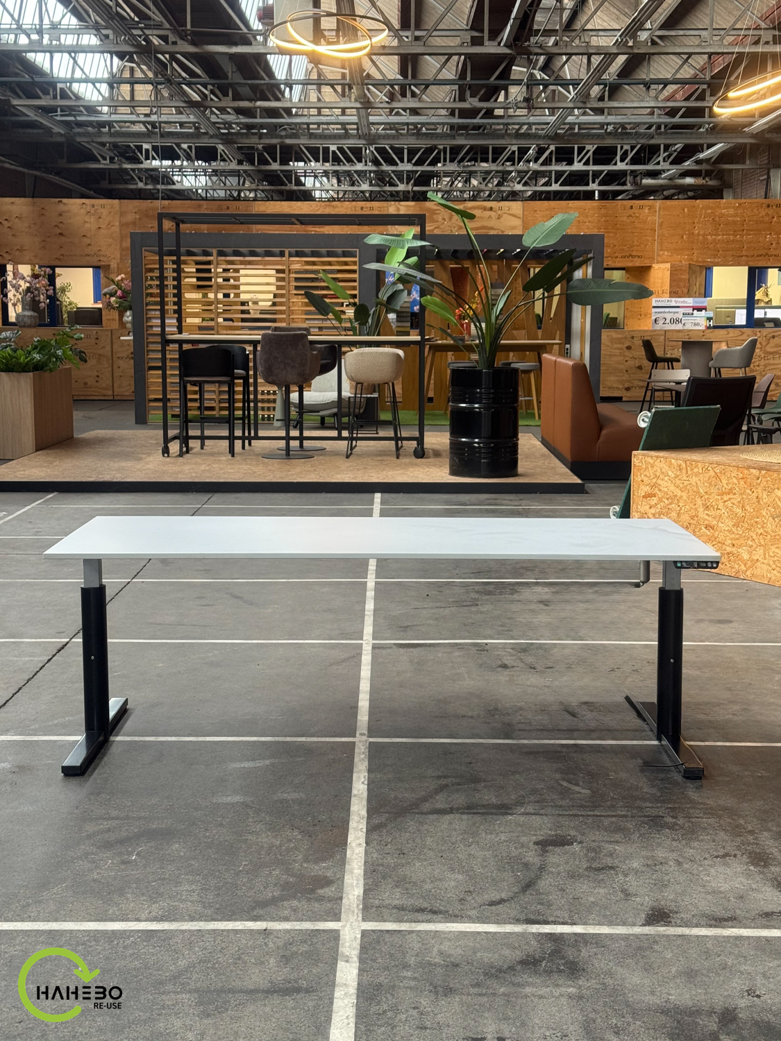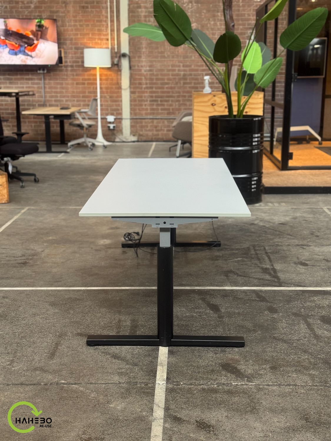 Dit elektrisch verstelbare bureau biedt de flexibiliteit om gemakkelijk te wisselen tussen zitten en staan, wat bijdraagt aan een ergonomische werkhouding. Ondanks dat het bureau al wat ouder is, functioneert het nog uitstekend en heeft het dankzij het grijze blad en zwarte frame een moderne uitstraling die in vrijwel elk kantoor past.